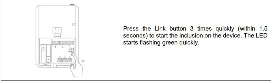 Press the Link button 3 times quickly (within 1.5 seconds) to start the exclusion on the device.