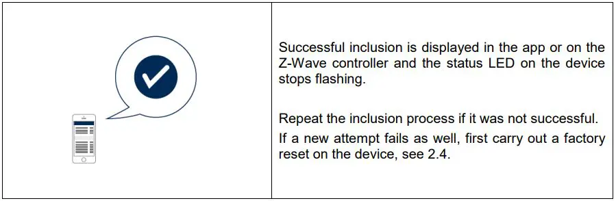 This procedure should only be used if the primary network controller is not capable of acting. If the device is set to factory default, the status is set to “not included” and the association settings and possible configurations are reset to default.