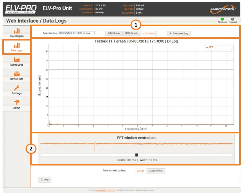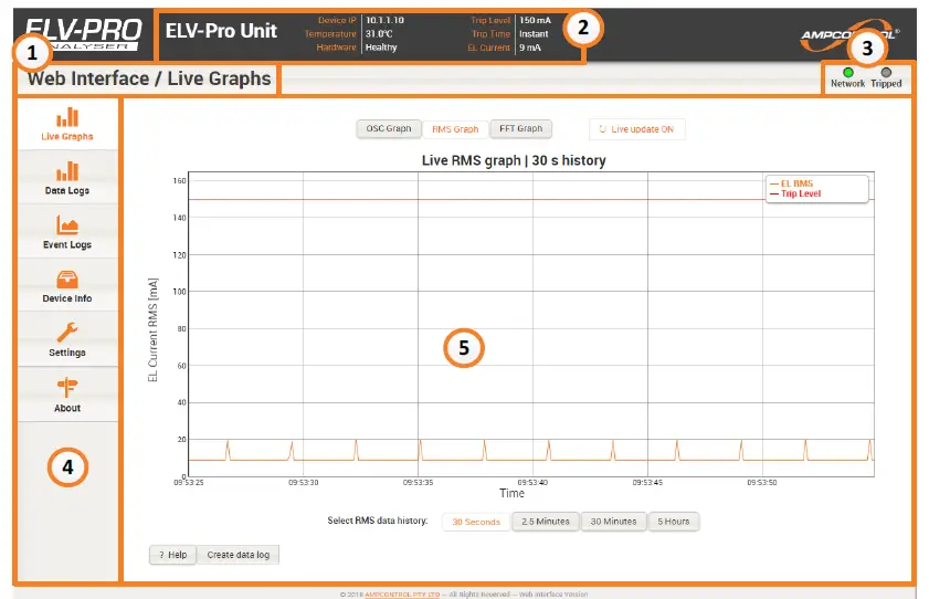 Ethernet connection to the ELV-PRO relay provides the ability to monitor the device parameters and real time measured current from an internet browser. All data logs stored on the unit can also be viewed.