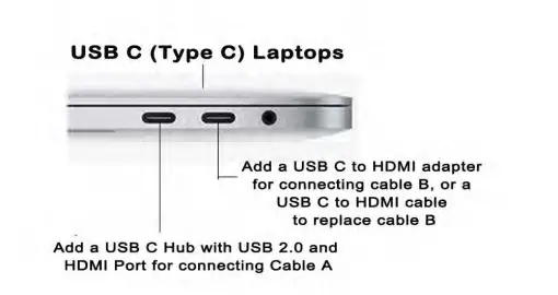Q5. My computers only have one HDMI output, how can I connect both cable A and cable B? Please refer to “Important Reminder before Set-up”