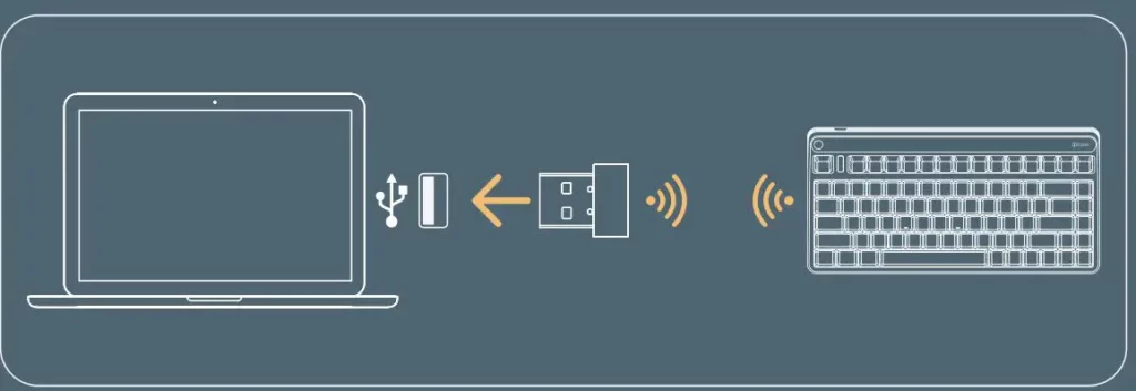 - Press FN+4 to enter 2.4GHz matching mode FN 4 (2.4GHz matching mode on when pink light blinks.)