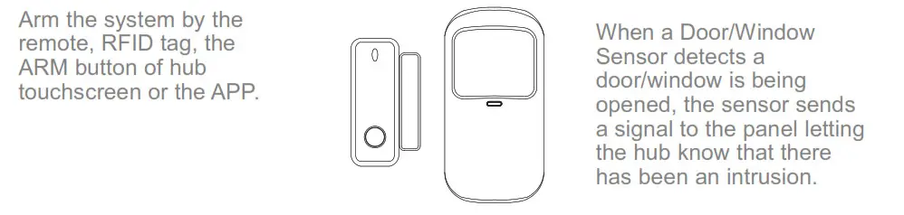 You can arm and disarm your home in three ways: entering your passcode on the panel if it is locked and press Arm/Stay Arm/Disarm icons, tapping RFID Tag on the panel, or using the remote tag, or app. When you hear the panel’s chime alert, the screen will also show you a countdown so you know how much time you have before the alarm sounds.