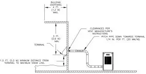 WARNING: The vent installation must be in accordance with Part 7, Venting of Equipment, of the National Fuel Gas Code, ANSI Z223.1/ NFPA 54-latest revision or applicable provisions  of the local building codes. Canadian installations must comply with CSA B149.1 or.2 Installation Code. Improper venting can result  in excessive levels of carbon monoxide whichcan result in severe personal injury or death!