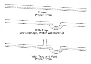 Drain line does not create traps and is vented per local code.